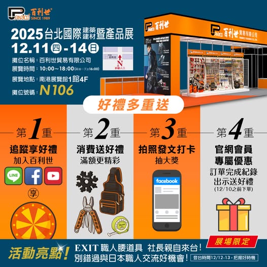 2025 年,百利世引進 EXIT 系列腰道具與工具,並積極參展國際展覽,展示高附加價值產品如內視鏡檢測工具,吸引來自日本、韓國等國際客戶,展現品牌創新,專業能力推及各層次施作者需要。
