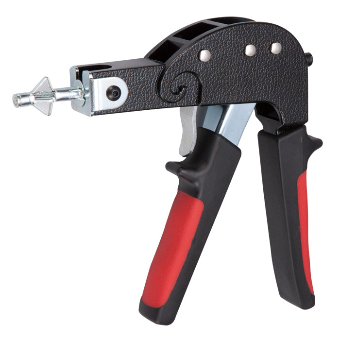 膏板、輕隔間、矽酸鈣板專用牆板拉脹釘使用的拉釘槍,適用於自攻螺絲及一般膨脹螺絲不適用的場合。施工、操作非常方便、快速,不會破壞工件。