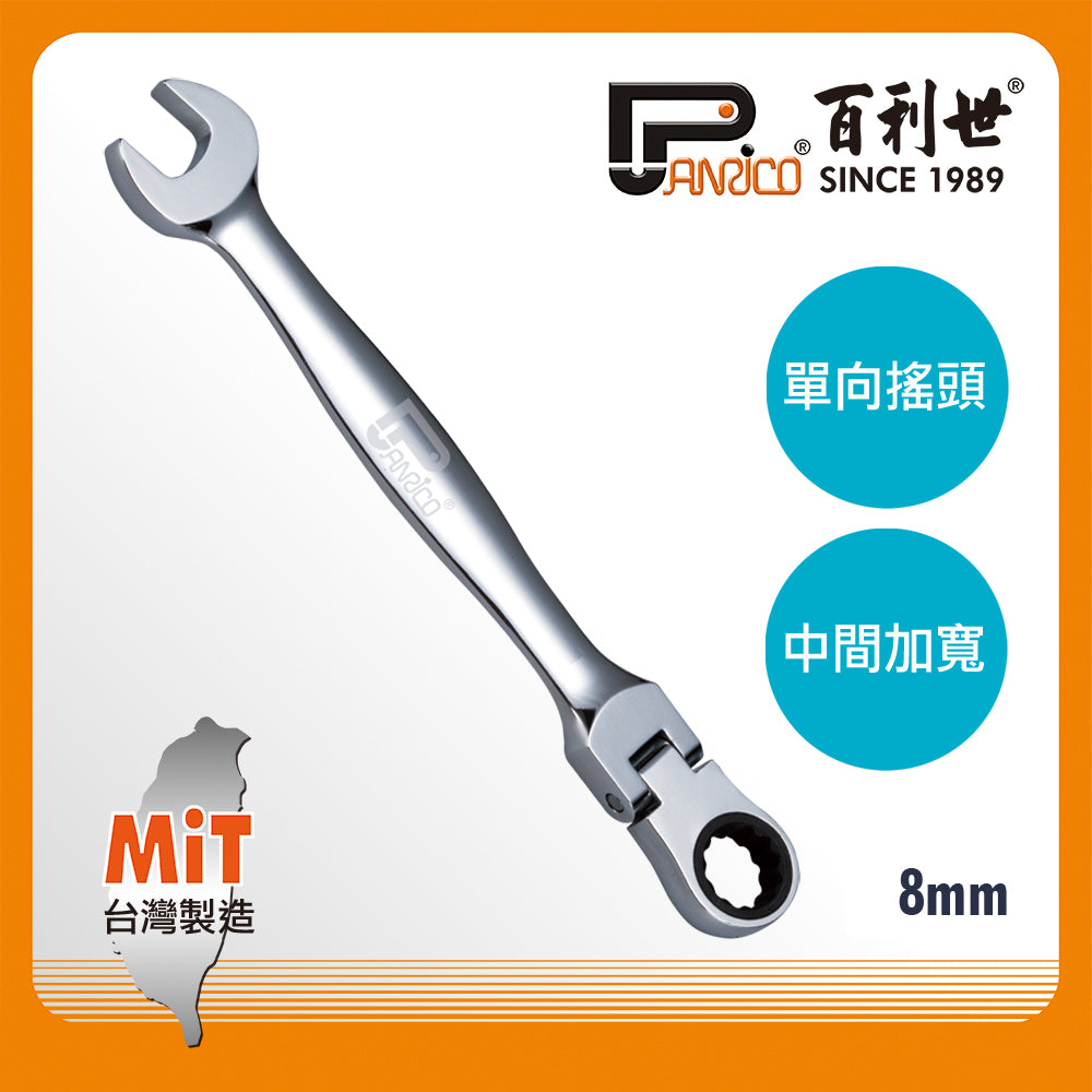 可180o切換的搖頭扳手-棘輪梅開扳手,符合人體工學設計的流線型握柄,中間加寬設計,更易施力,扭力高。梅花棘輪處採薄壁設計,狹小空間施工超方便。72齒設計,連5o的空間也沒問題。