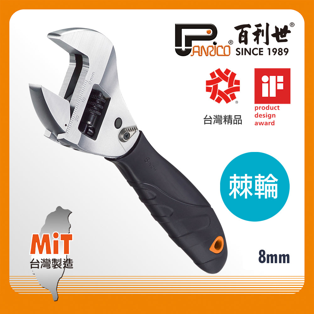 • 棘輪式活動扳手,專利設計能同時使用棘輪和一般扳手功能