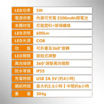 - 雙關節設計,可360°折疊翻轉調整角度照明