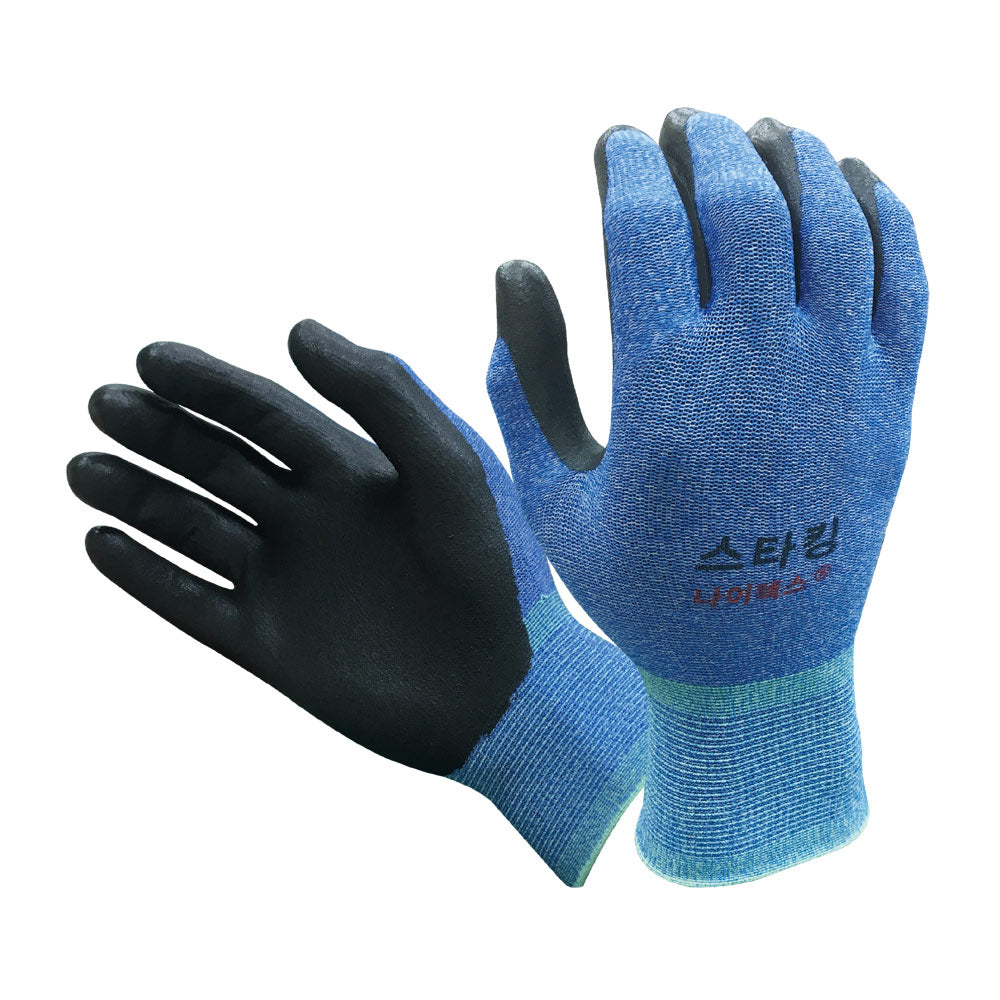 輕薄型止滑耐磨手套之聚酯纖維材質強度大,不易破裂,快乾耐水洗,洗完不易皺、不易縮水。丁腈橡膠對礦物油、植物油、苯、汽油、普通的稀酸和鹼具有良好的耐受性。