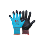 止滑耐磨手套不止於乾燥環境使用,手套打濕後擰乾與油污的工作環境下,仍保持絕佳的抓握力。綿密的丁腈橡膠熱塑貼合層,密度高,不會馬上被刺破,防護性佳。