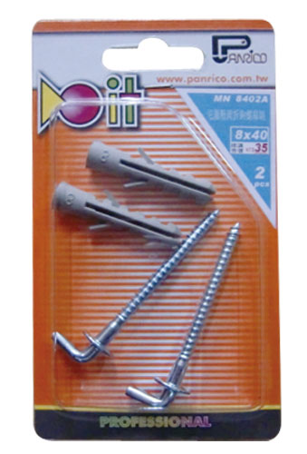 DIY nylon art folding hook screw set nylon bolt sleeve folding nail hook set plastic plug folding nail hook set plastic gecko L-shaped hook set MN 8x40mm (MN8402A)