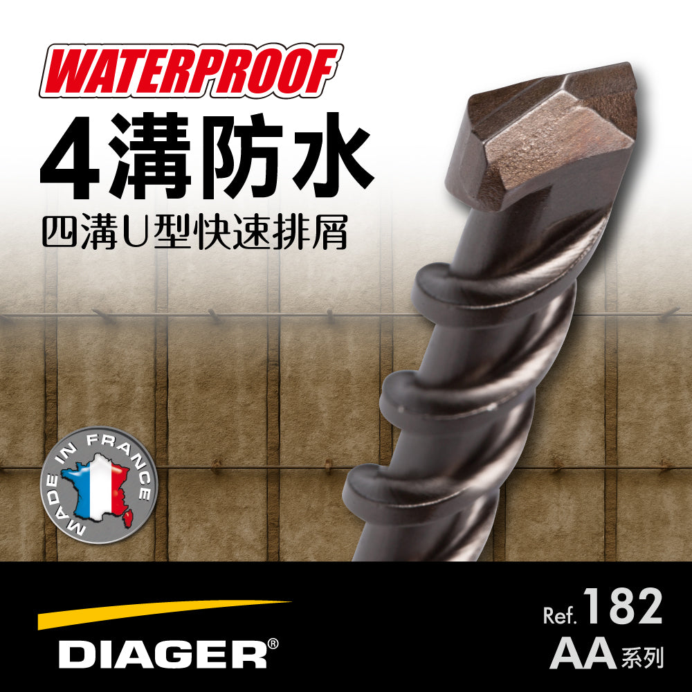 Exclusive agent ~ DIAGER special cement drill bit imported from France for waterproofing and four-groove cement drill bit for water- stopping . It is SDS PLUS cement drill tail. The upgraded U-shaped groove is suitable for substrates with high moisture content in waterproofing and water-stopping projects, such as high-humidity sand. Stone, remove chips freely . The cutter head is made of shock-resistant carbide material, which is hard and impact-resistant. When used with a force-free 4-channel hammer drill, the effect is first-class.