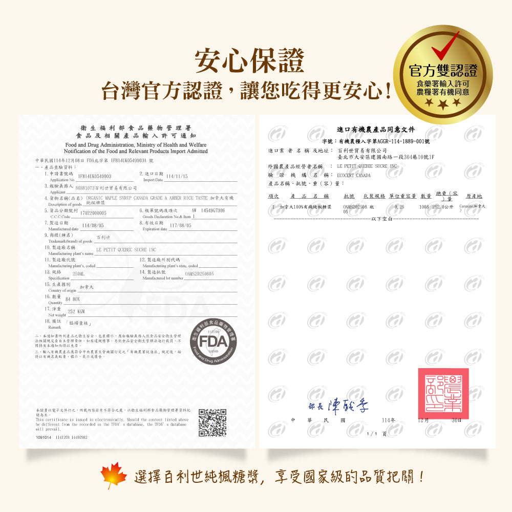 加拿大有機純楓糖漿 ECOCERT有機認證(M-FM-0250)